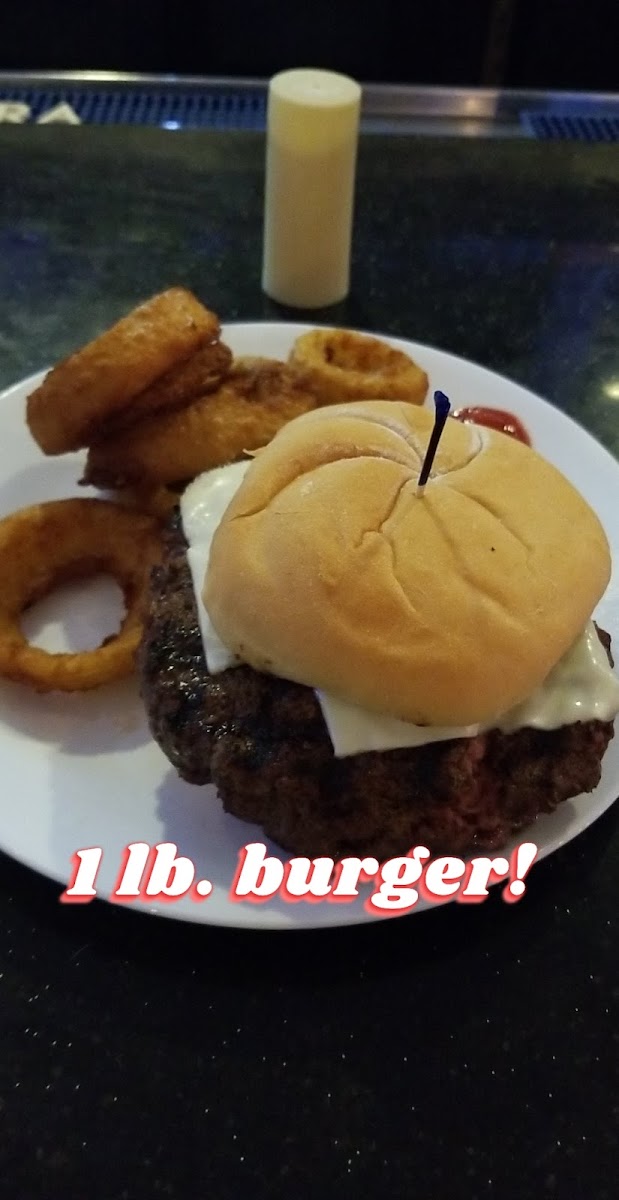 Nick’S Pub One Pound Cheeseburger with Onion Rings